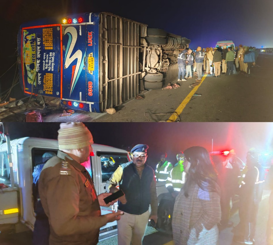 आगरा–लखनऊ एक्सप्रेसवे पर दर्दनाक हादसा, बस पलटने से महिला व बच्चे की मौत, एक दर्जन घायल
