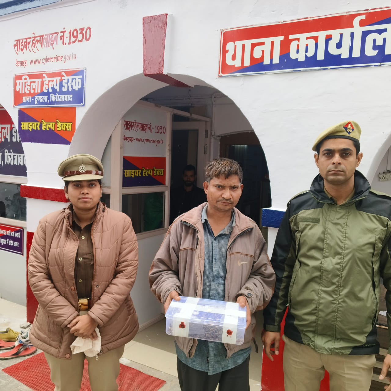 गिरफ्तारी बसई बम्बा पुलिया, ग्राम बसई, थाना टूण्डला क्षेत्र से की गई।