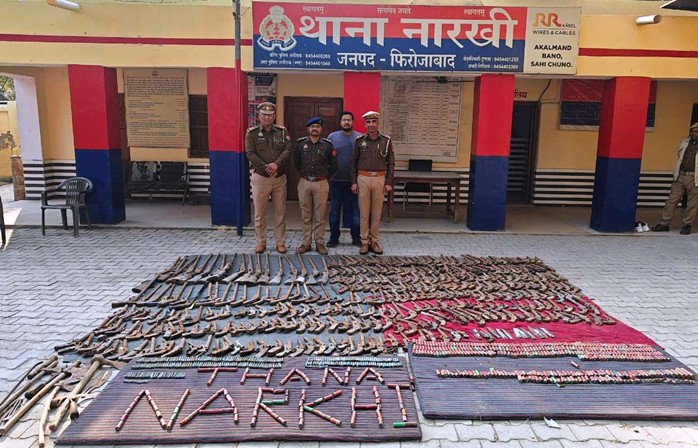 फिरोजाबाद: थाना नारखी में जब्त अवैध हथियारों का हुआ विनिष्टीकरण, 385 मुकदमों से जुड़ा माल नष्ट