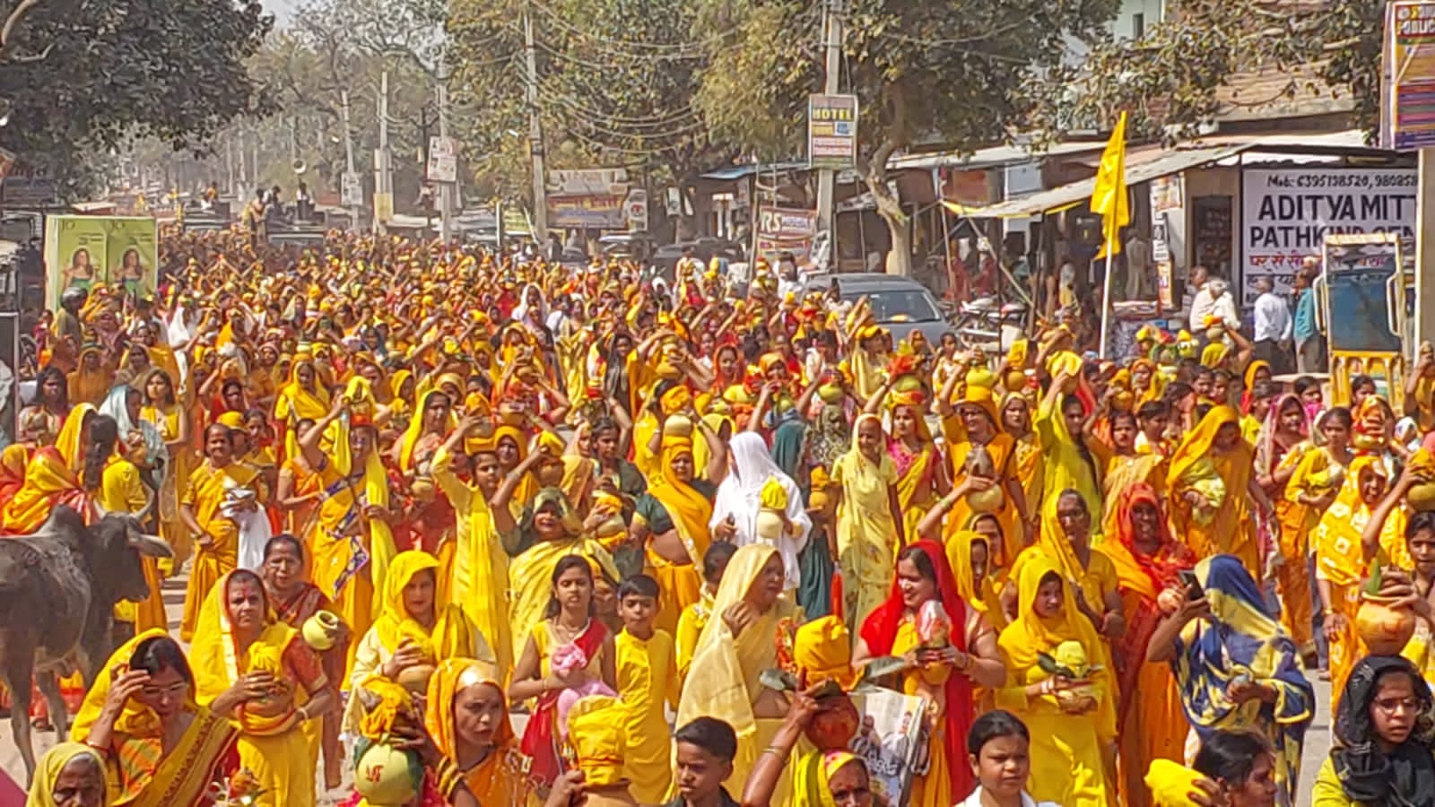 कलश यात्रा में शामिल महिलाएं पारंपरिक वेशभूषा में सिर पर कलश रखकर भक्ति भाव के साथ चलती नजर आईं। इस दौरान श्रद्धालु भजन-कीर्तन करते हुए आगे बढ़ते रहे, जिससे पूरे क्षेत्र का वातावरण पूरी तरह भक्तिमय हो गया।