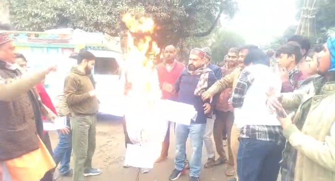 यूजीसी एक्ट के विरोध में राष्ट्रीय युवा वाहिनी गौ प्रकोष्ठ का जोरदार प्रदर्शन, रसूलपुर शहीद चौक पर हुआ पुतला दहन