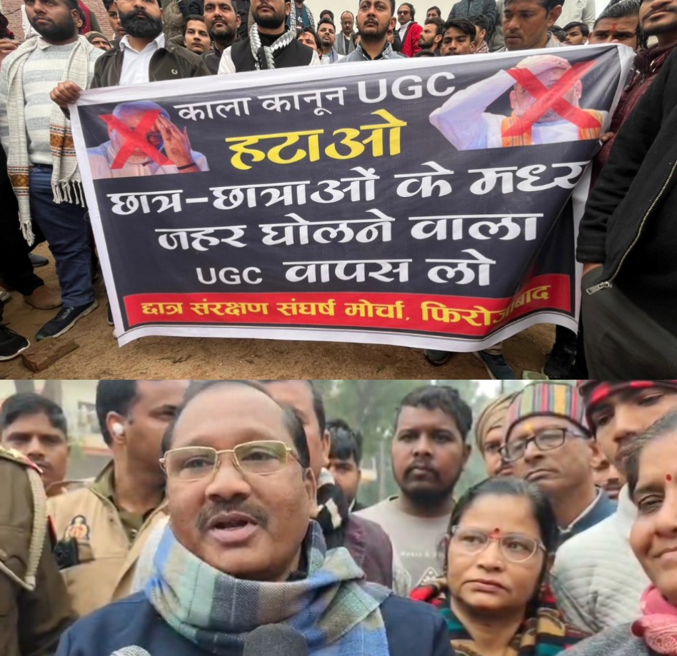 यूजीसी बिल के विरोध में फिरोजाबाद में छात्रों का पैदल मार्च, टूंडला विधायक के आवास पर प्रदर्शन
